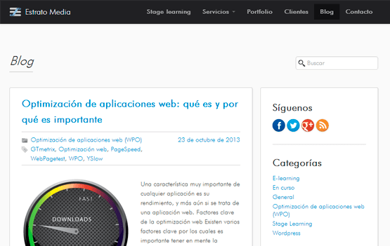 Web corporativa de Estrato Media S.L., donde se ofrecen los productos y servicios que proporciona la empresa, desarrollada sobre Wordpress y optimizada mediante técnicas WPO, Varnish Caché y Cloudflare.